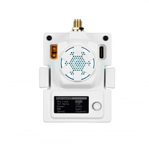 Updated Happymodel ES24TX module with up to 1W of transmitting power. It has heatsink, cooling fan and RBG led. However USB connector still cannot be accessed from outside. Has additional ESP chip for backpack functions (telemetry relay, etc).