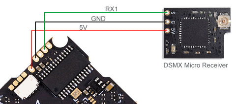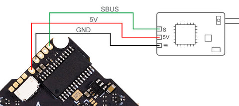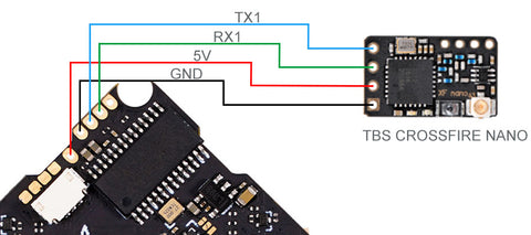 Here is the connection diagram with the TBS Crossfire receiver.