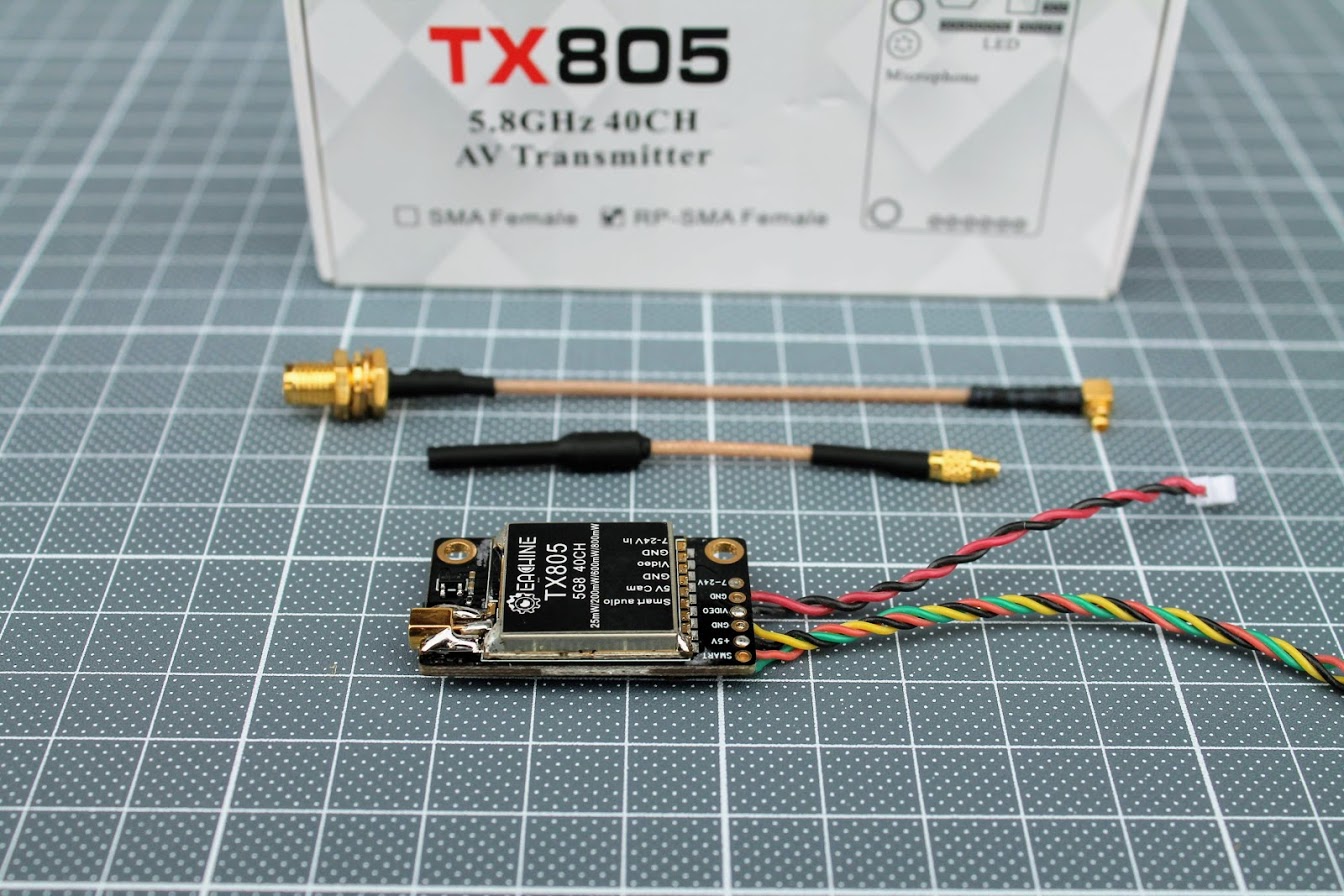 TX805 comes with a VTX, MMCX linear dipole antenna, MMCX to RP-SMA or SMA adapter pigtail (can be selected on purchase) and a small instructions leaflet.