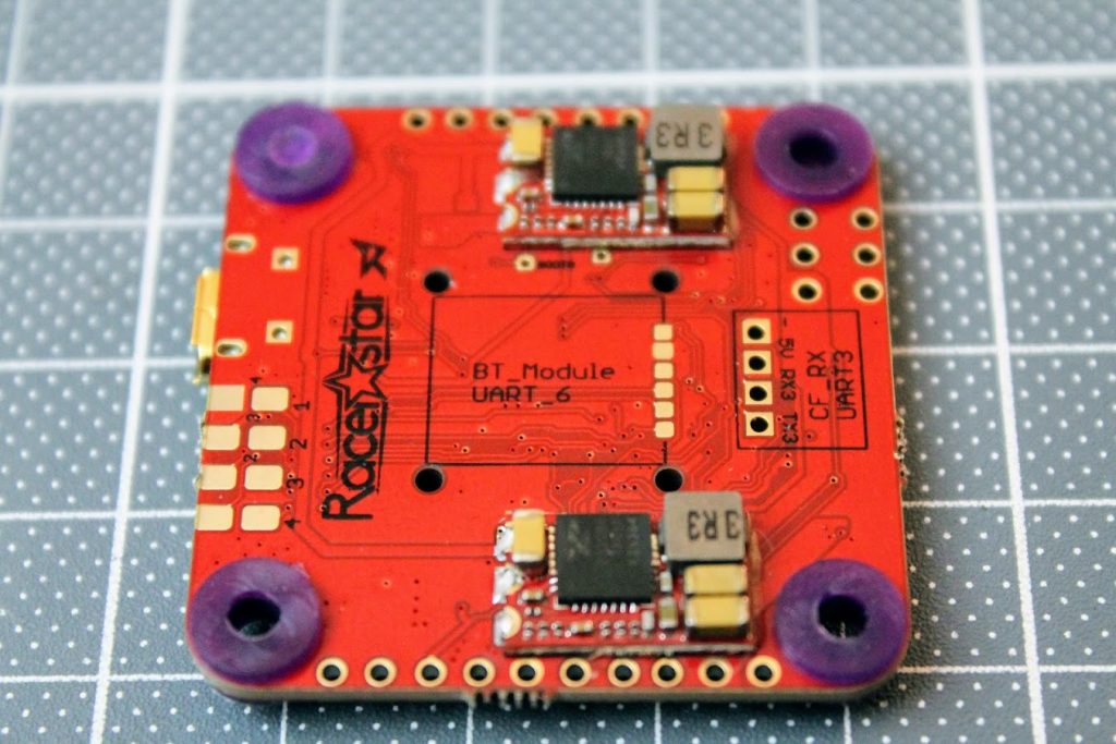 In the middle of the bottom side there is a place for soldering the optional Bluetooth module. It would use UART6 for the communication with